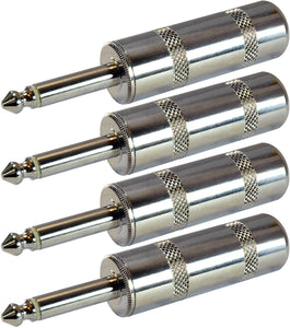 GLS Audio offers durable 1/4" TS jumbo plug male connector in a convenient and affordable 4 pack, providing a premium all metal construction for your cables.