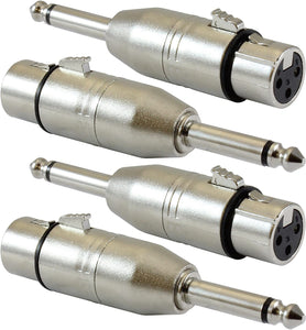 GLS Audio offers durable XLR female to 1/4" TS male couplers in a convenient and affordable 4 pack, featuring rubber grommets for a secured connection.